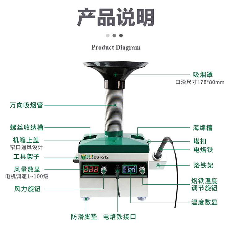 ▶ 产品名称: 移动式焊烟吸烟仪电烙铁一体机▶ 产品型号: BST-212▶ 产品类别: 吸烟仪系列