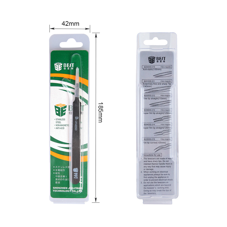 ▶ 产品名称: 优质钢化防静电镊子▶ 产品型号: BST-204ESD▶ 产品类别: 镊子系列