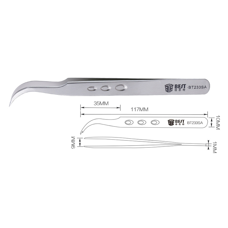 ▶ 产品名称: 亚光沙面镊子 不锈钢镊子▶ 产品型号: BST-233SA▶ 产品类别: 镊子系列