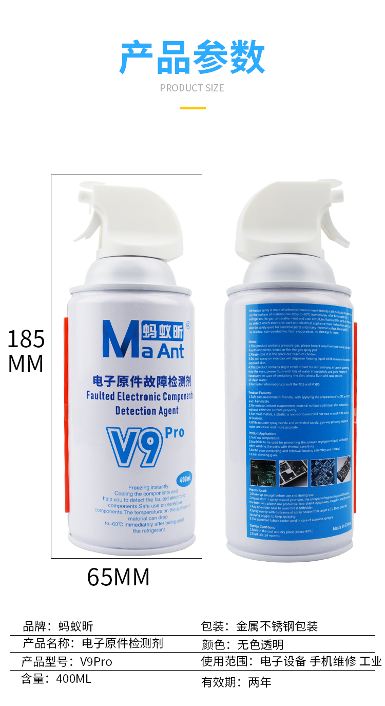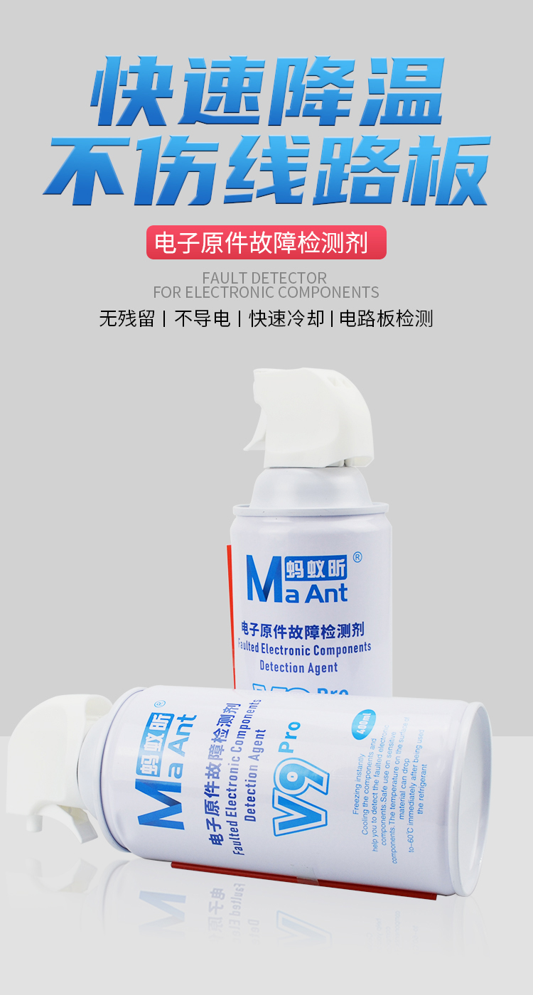 返回当前位置: 首页 / 产品中心 / 蚂蚁昕电子元件故障检测剂V9PRO冷冻剂 快速判断短路漏电故障点