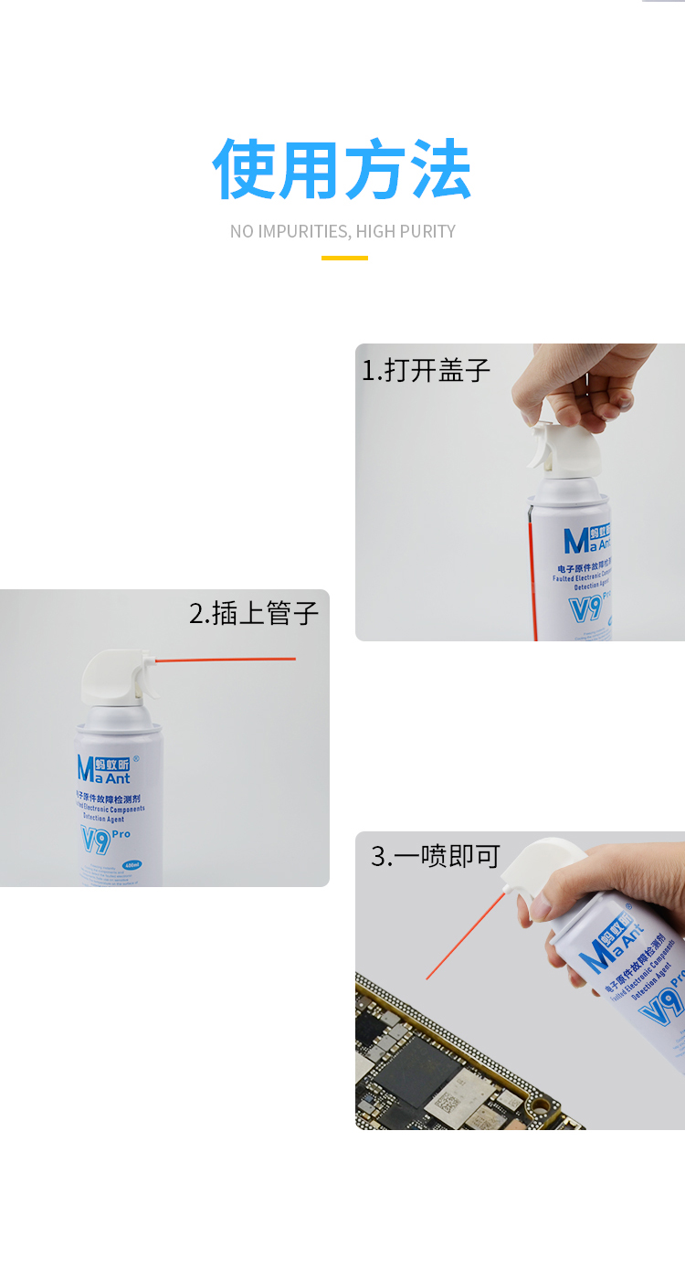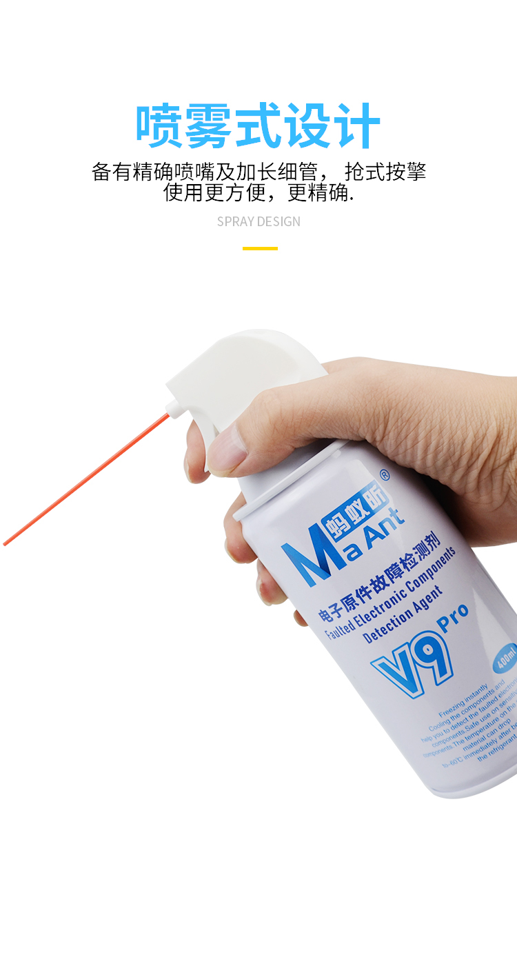 ▶ 产品名称: 电子元件故障检测剂▶ 产品型号: V9PRO▶ 产品类别: 耗材类