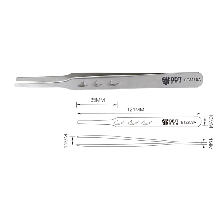 ▶ 产品名称: 亚光沙面镊子 不锈钢镊子▶ 产品型号: BST-225SA▶ 产品类别: 镊子系列